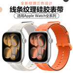 适用苹果表带apple iwatch11线条纹硅胶表带三色纹理苹果手表表带